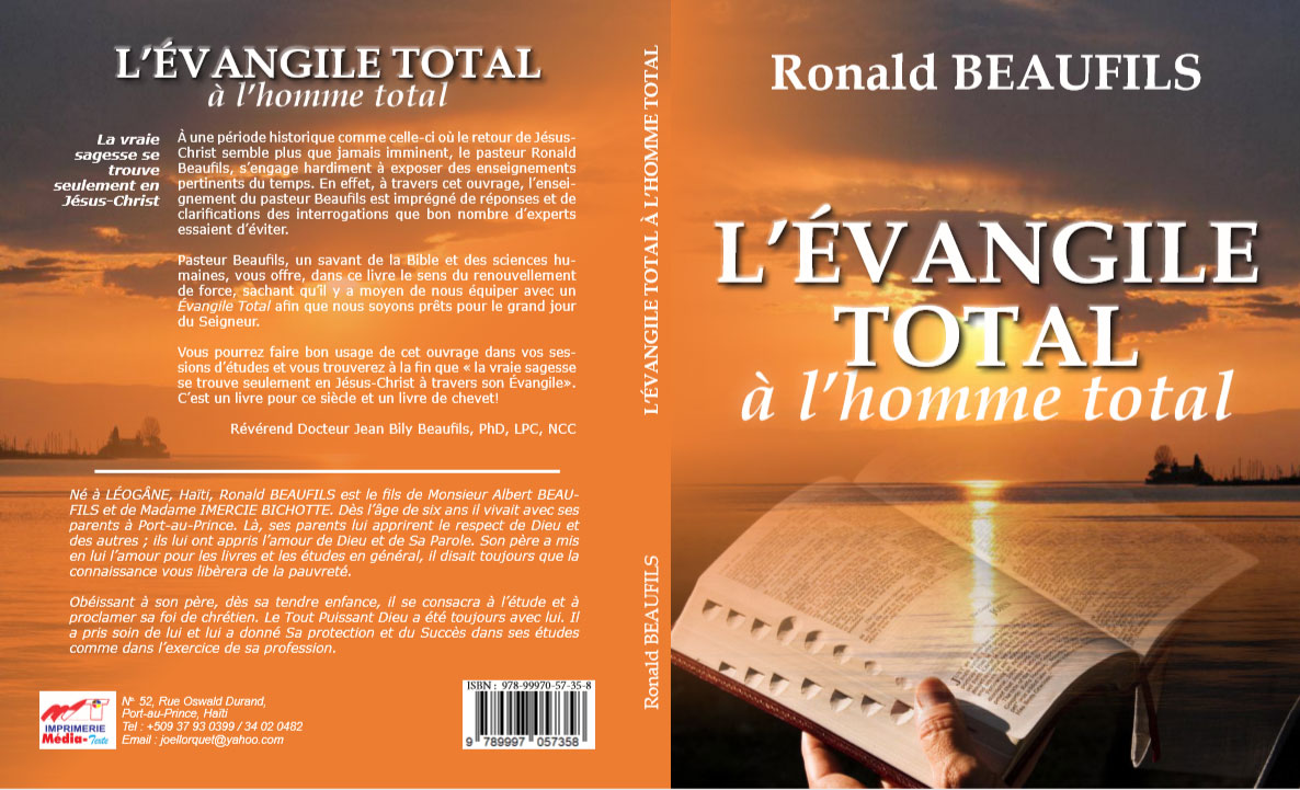 Le livre "L'évangile Totale à L'homme Total" est disponible en Librairie (La Pléiade et Presses Évangéliques) et sur Amazon en version électronique. Ce livre, publié par Ronald Beaufils, traite de la chrétienneté sur tous ses aspects et du rôle du chrétien dans le monde.