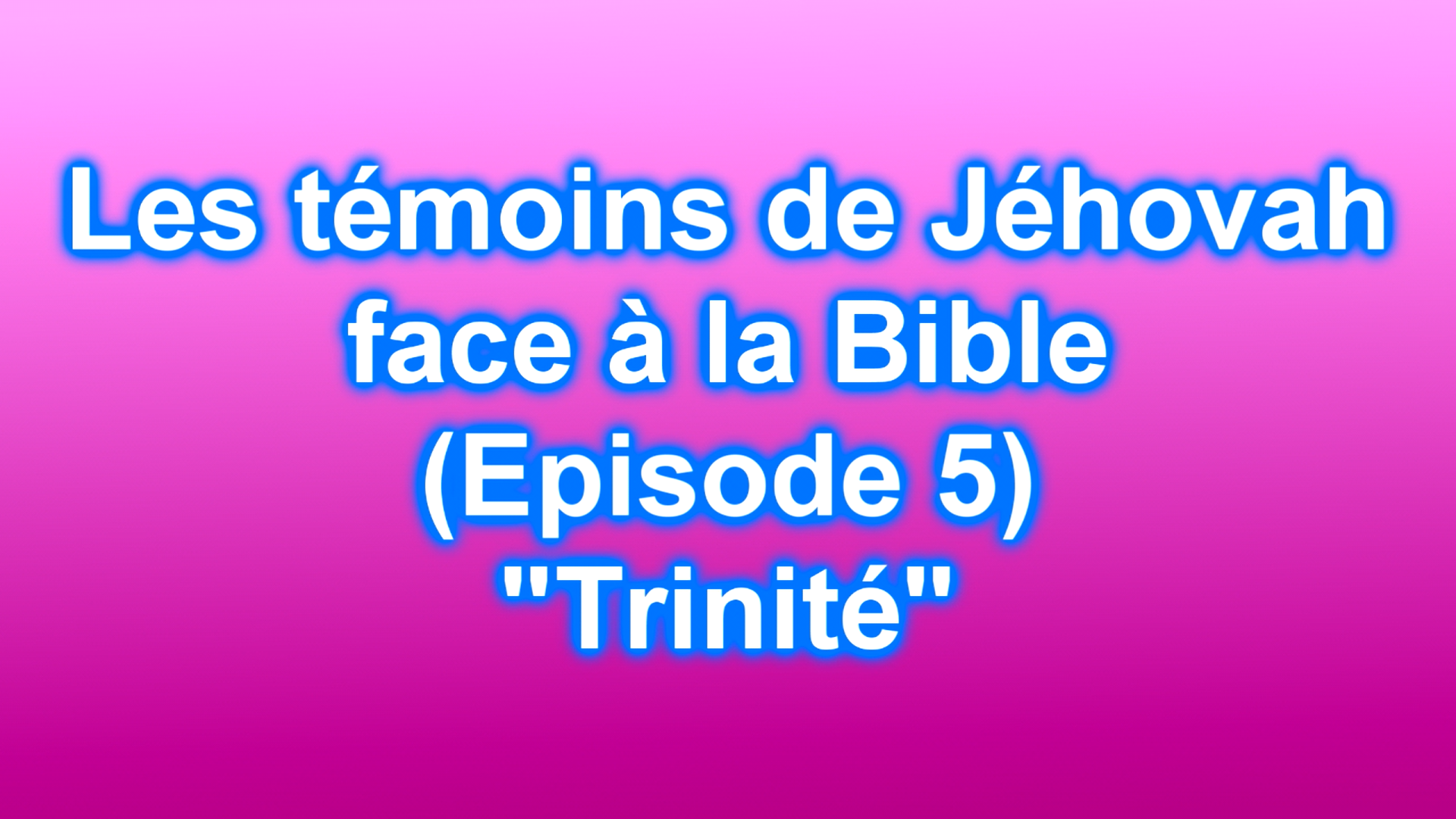 Le cinquieme episode sur la serie d'etudes des temoins de Jehovah est publiee sur la chaine youtube ainsi que sur ce site. Ce nouvel episode a pour sujet "La trinite".