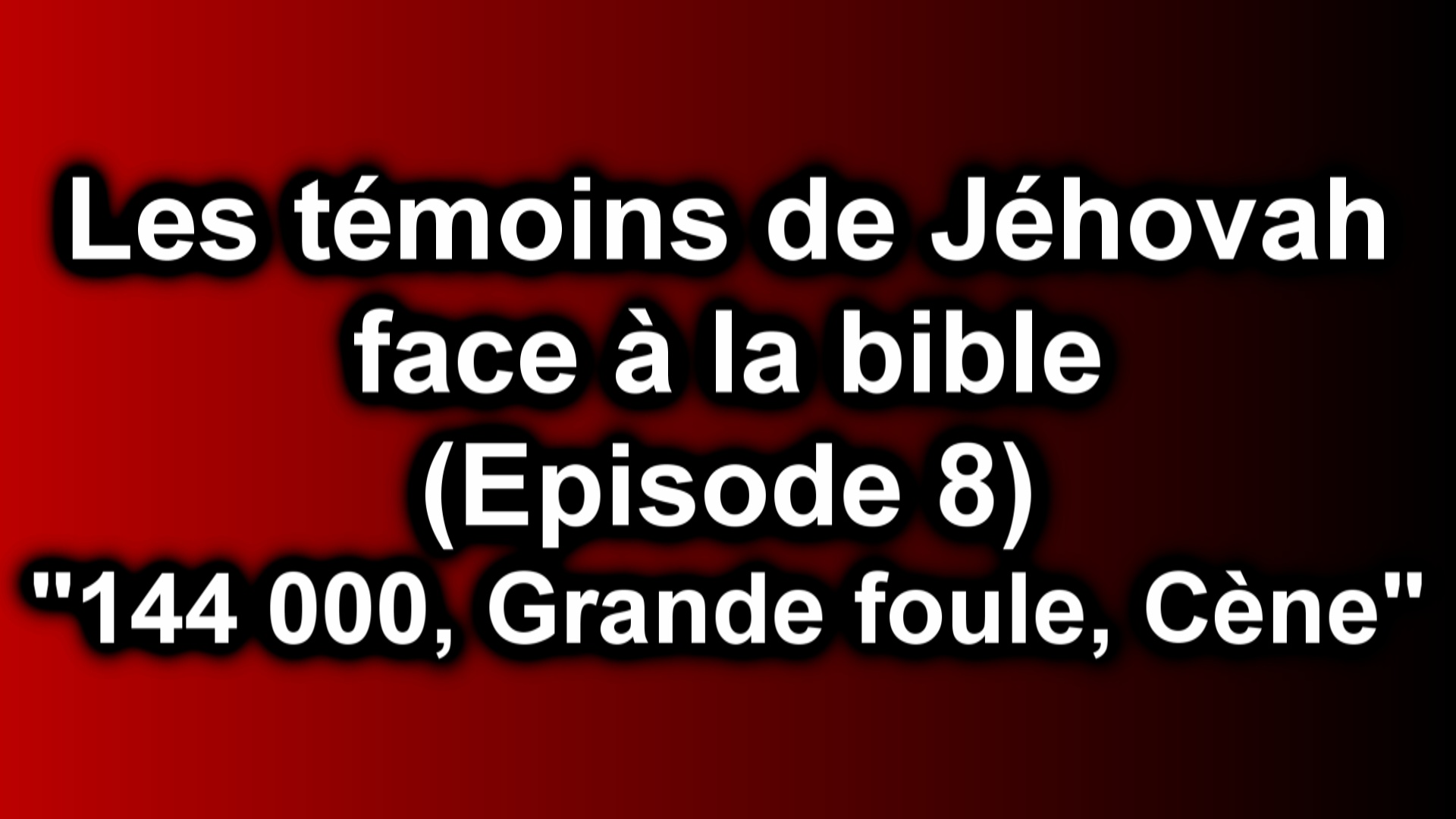 Le huitieme episode sur la serie d'etudes des temoins de Jehovah est publiee sur la chaine youtube ainsi que sur ce site. Ce nouvel episode a pour sujet "144 000, Grande foule et Cene".
